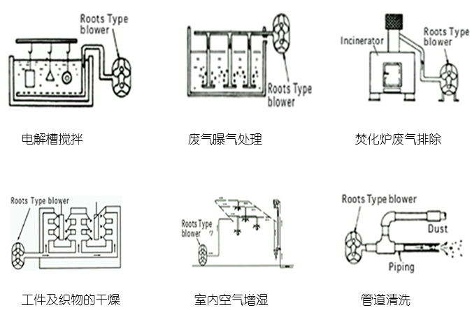 通過不同的管道連接方式和結(jié)構(gòu)布置,本產(chǎn)品可作為鼓風(fēng)機和真空泵滿足各類不同工況條件的使用。