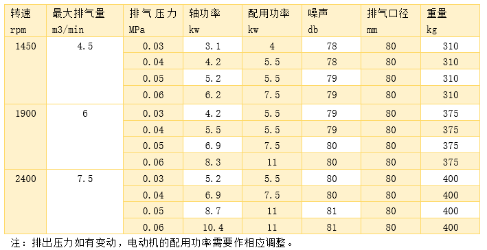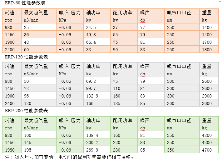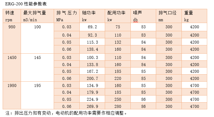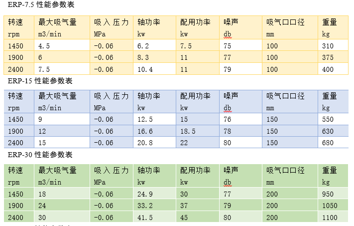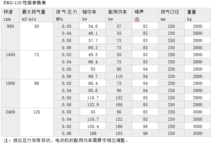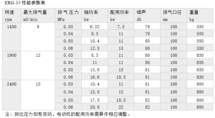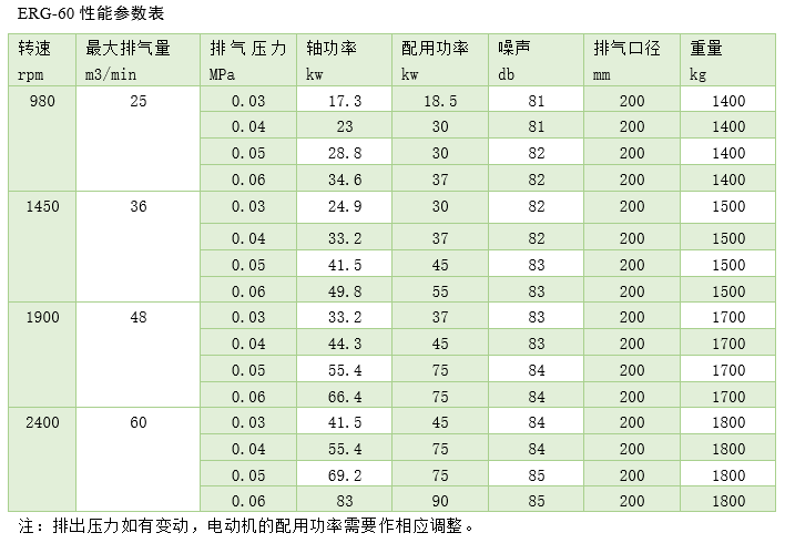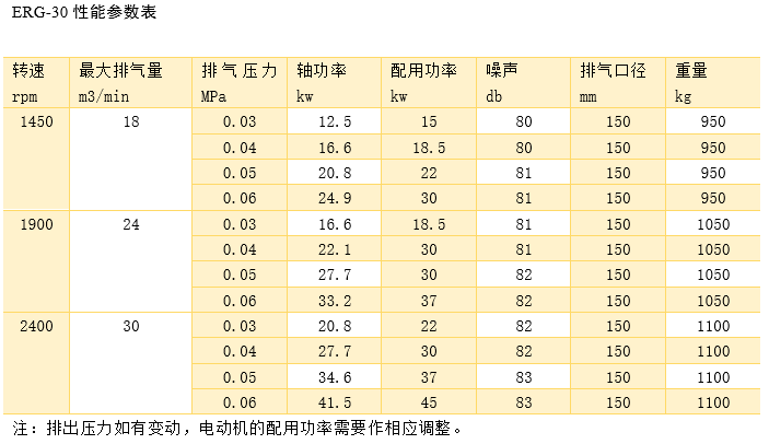 ERG型三葉羅茨鼓風(fēng)機性能參數(shù)
